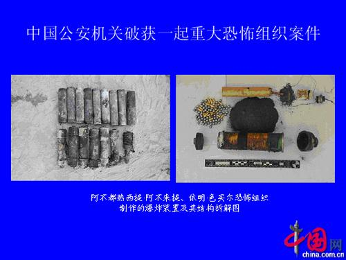 阿不都熱西提·阿不來(lái)提、依明·色買(mǎi)爾等人在審訊中供認(rèn),他們案發(fā)前流竄于新疆、河南、廣東、云南等多個(gè)省區(qū),暗中從事宗教極端活動(dòng),發(fā)展培訓(xùn)成員,建立恐怖組織,并積極籌措資金,四處尋購(gòu)制爆原料,多次進(jìn)行制爆試爆,為實(shí)施恐怖破壞活動(dòng)做準(zhǔn)備。為制造更大影響,2009年7月至10月,他們準(zhǔn)備了數(shù)十枚自制炸彈、燃燒瓶以及刀斧等一批作案工具,預(yù)謀在新疆喀什、和田、阿克蘇等地實(shí)施大規(guī)模、連環(huán)恐怖襲擊。