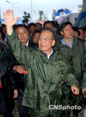 24日下午,溫家寶步行走上唱?jiǎng)P堤,親自查看決堤現(xiàn)場情況。下午4時(shí)許,溫家寶來到撫州市體育館,看望慰問安置在此處的受災(zāi)民眾,這里也是此次洪災(zāi)最大的安置點(diǎn)。