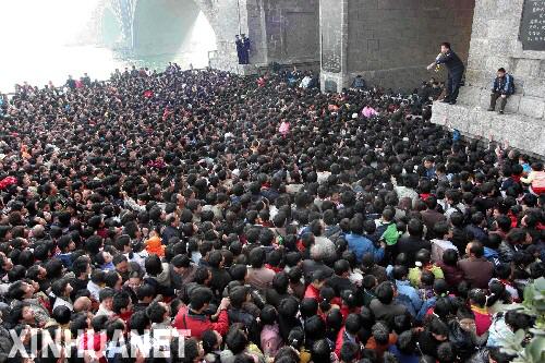 資料圖片 在首屆“河南文化遺產日”的當天,大批市民和附近的群眾涌入龍門石窟景區(2005年11月攝)。新華社記者王頌攝