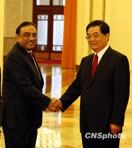 中國國家主席胡錦濤7日下午在人民大會堂同來華進行工作訪問的巴基斯坦總統扎爾達里舉行會談。雙方就進一步發展中巴戰略合作伙伴關系等共同關心的問題深入交換意見,達成廣泛共識。
