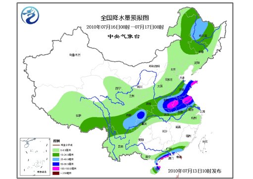 13-14日,重慶南部、貴州北部、湖北、江西北部、 湖南北部安徽中南部、江蘇南部、上海、浙江中北部等地仍將有較大降雨,降雨量一般有40-80毫米,其中長江中下游沿江局部地區有80-160毫米。