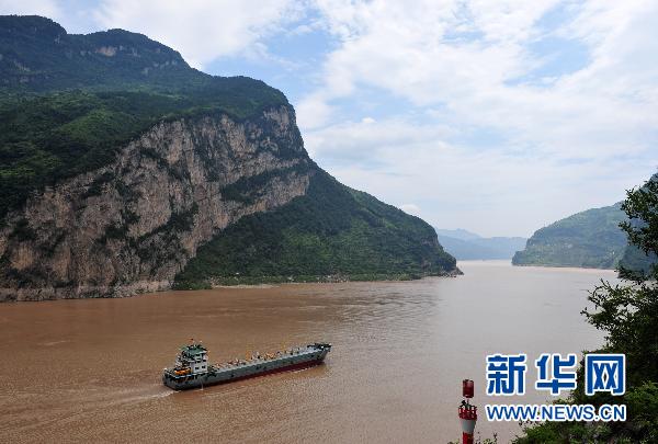8月2日,一艘貨輪行駛在三峽庫區秭歸縣九畹溪水域。新華社發(鄭家裕 攝)