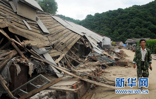 8月3日,樺甸市重災(zāi)區(qū)夾皮溝鎮(zhèn)一名村民從倒塌的房前走過。當(dāng)日,記者從吉林樺甸市政府了解到,截止到8月3日,該市洪災(zāi)死亡失蹤人口已經(jīng)達(dá)到48人,近20萬人口受災(zāi)。洪災(zāi)中,倒塌民房7677戶,損壞房屋19670間。現(xiàn)在樺甸市常山鎮(zhèn)、二道甸子鎮(zhèn)等重災(zāi)區(qū)正在籌備災(zāi)后重建。 新華社記者 宗巍 攝