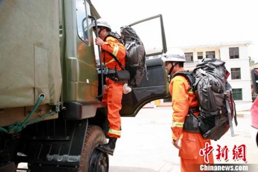 圖為云南公安消防總隊官兵在昆明集結,準備馳援災區。中新社發 曾金華 攝
