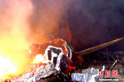 24日21時36分許,河南航空有限公司(原鯤鵬航空公司)一架由哈爾濱飛往伊春的E190型飛機在抵達伊春機場降落時失事,機上包括5名機組人員在內共96人。失事現場發現43具遇難者遺體,其余53人獲救送醫,目前無生命危險。圖為飛機失事現場 。陳剛 攝