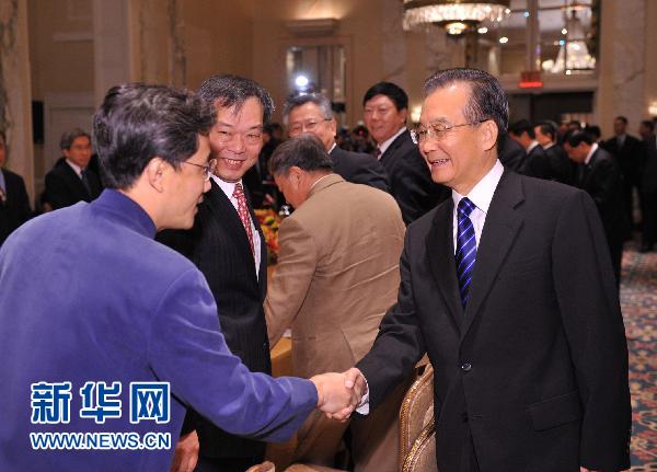當地時間9月22日,中國國務院總理溫家寶在紐約與美國華文媒體和港澳媒體負責人座談。 新華社記者 黃敬文 攝