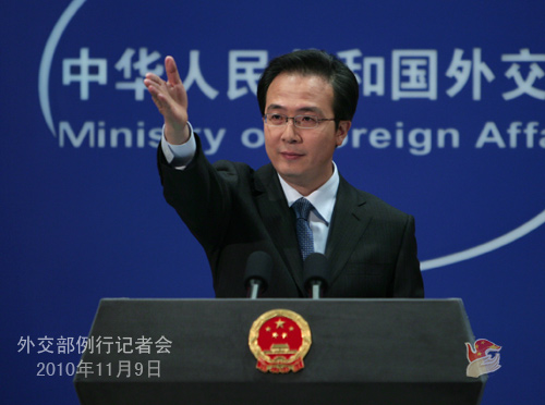2010年11月9日,外交部發(fā)言人洪磊主持例行記者會。