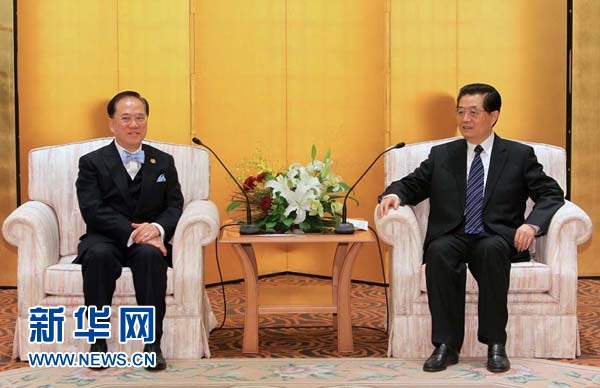 胡錦濤會見曾蔭權 11月13日,國家主席胡錦濤在日本橫濱會見香港特別行政區行政長官曾蔭權。新華社記者樊如鈞攝
