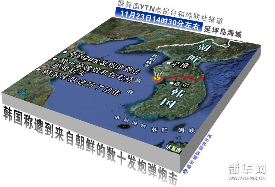 圖表:韓國稱遭到來自朝鮮的數十發炮彈炮擊 新華社發