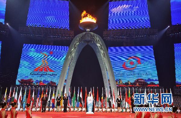 11月27日,主火炬塔的亞運圣火熄滅。當日,第16屆亞運會在廣州閉幕。 新華社記者楊磊攝