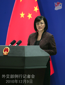 2010年12月9日,外交部發言人姜瑜主持例行記者會。