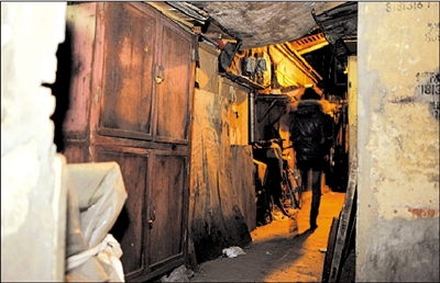 鼓樓東大街92號院狹窄的巷子內堆積了大量居民的雜物。本報記者 朱嘉磊 攝