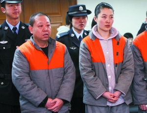 門(mén)頭溝原副區(qū)長(zhǎng)閆永喜與情婦毛旭東(右)同庭受審。京華時(shí)報(bào)