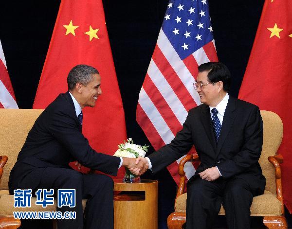 資料圖:2010年11月11日,中國國家主席胡錦濤在韓國首都首爾同美國總統奧巴馬舉行會晤。新華社記者劉建生攝
