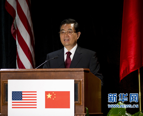1月20日,國家主席胡錦濤在華盛頓出席美國友好團體舉行的歡迎宴會并發表重要講話。新華社記者 蘭紅光 攝