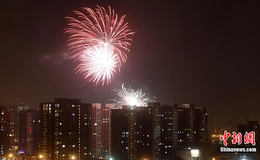 2月2日,除夕夜,北京市民燃放煙花爆竹除舊迎新。中新社記者 杜洋 攝