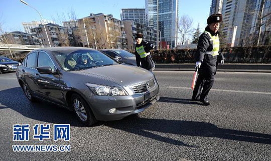 2月24日,交警在北京三元橋附近攔截一部沒有上牌的車。當(dāng)天,北京交管部門開展對涉牌違法車、霸王車的專項整治。此次專項整治是北京市“文明交通行動”的重要內(nèi)容之一。李文 攝