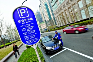 昨日,西二環內,一個路邊停車場的價格標牌已經更換,身著統一制服的管理人員正檢查停放車輛的計時條。新華社發