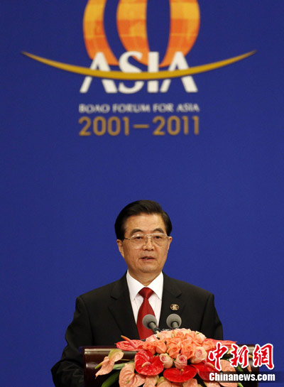 中國國家主席胡錦濤15日出席博鰲亞洲論壇2011年年會開幕式,發表題為《推動共同發展 共建和諧亞洲》的演講。胡錦濤說,10年來,博鰲亞洲論壇已經成為全球具有重要影響的經濟論壇之一。