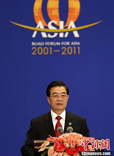 4月15日上午,中國國家主席胡錦濤出席博鰲亞洲論壇2011年年會并發(fā)表主旨演講。中新社發(fā) 任晨鳴 攝