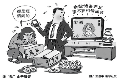 搶鹽的信息到底是怎么傳播開來的?“我母親打電話通知我,趕緊去超市買鹽,朋友給我發(fā)了短信催我買鹽,打開網(wǎng)頁更是鋪天蓋地的核輻射和搶鹽的報(bào)道,鄰居間打招呼都變成了‘你買到鹽沒’。”王女士說,“現(xiàn)在吃也吃不完,退也退不掉,真不知道該怎么辦。”