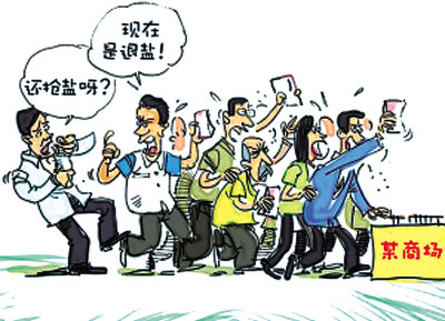“雜貨攤前擠滿了人,以往得賣一年的6箱鹽,不到一天就賣光了。”北京朝陽區(qū)某雜貨店的趙老板經(jīng)歷了從搶鹽到退鹽的全過程。“來買鹽的顧客都在說‘吃碘鹽防輻射’,結(jié)果沒兩天,全過來要求退貨,我只好再給這些顧客退貨退錢,積壓的幾箱鹽還不知道怎么辦。”