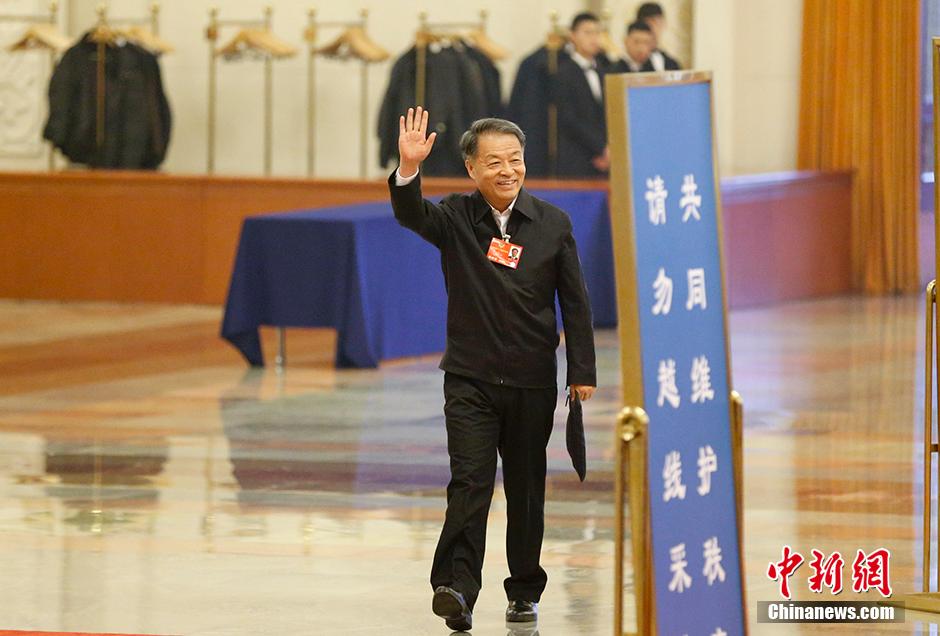 會(huì)前,交通運(yùn)輸部部長楊傳堂經(jīng)過人民大會(huì)堂“部長通道”時(shí)同記者打招呼。 中新社記者 杜洋 攝