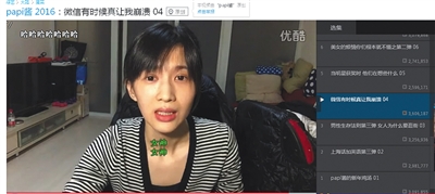 Papi醬視頻下架前在優(yōu)酷的訂閱人數(shù)為102.4萬,約有16條熱門視頻。