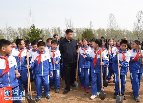 2013年4月2日,習近平在參加首都義務植樹活動時指出,“森林是陸地生態系統的主體和重要資源,是人類生存發展的重要生態保障。”(新華社記者 鞠鵬攝)