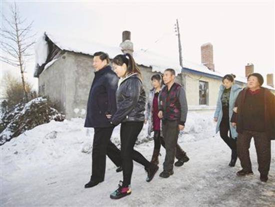2014年春節前夕,習近平冒著零下三十攝氏度的嚴寒,來到阿爾山市伊爾施鎮林業棚戶區看望林業工人。(新華社記者 蘭紅光攝)