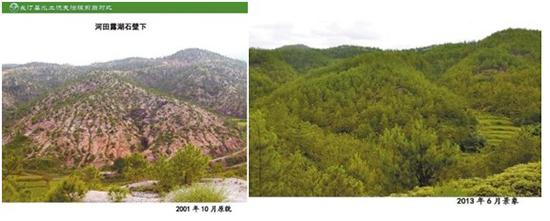 長汀縣河田鎮露湖村石壁下水土流失治理前后對比圖(圖片來源:福建日報)