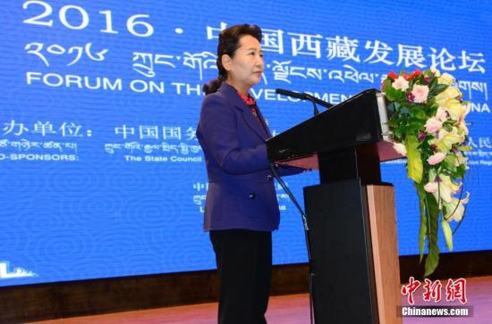 由中國國務(wù)院新聞辦公室和西藏自治區(qū)政府共同主辦、拉薩市政府承辦的“2016·中國西藏發(fā)展論壇”,7月7日在西藏自治區(qū)首府拉薩開幕。圖為中共中央宣傳部副部長、中國國務(wù)院新聞辦公室副主任崔玉英主持。陳韜彬 攝