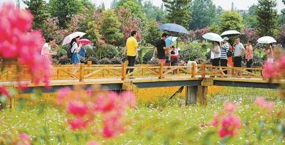 7月23日,成都市新都區(qū)軍屯鎮(zhèn)鄉(xiāng)村生態(tài)紫薇花海吸引眾多游客。該鎮(zhèn)共有15473畝耕地,多用于栽種苗木,綠化覆蓋率高達50%,是重要的花卉植物生態(tài)保護屏障,已榮獲“國家級生態(tài)鎮(zhèn)”稱號。 本報記者 衡昌輝 攝