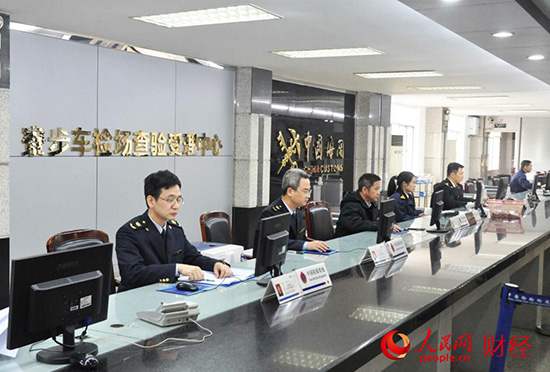 東莞寮步車檢場查驗受理中心辦事大廳從串聯改為并聯,讓進出口的貨物出行更便捷。(人民網 賈興鵬攝)