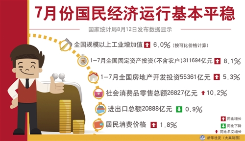 國(guó)家統(tǒng)計(jì)局新聞發(fā)言人盛來運(yùn)表示,盡管7月份部分指標(biāo)增速有所放緩,出現(xiàn)了一些波動(dòng),但經(jīng)濟(jì)運(yùn)行仍在合理區(qū)間,經(jīng)濟(jì)運(yùn)行總體平穩(wěn)、穩(wěn)中有進(jìn)、穩(wěn)中向好的大勢(shì)沒有改變。