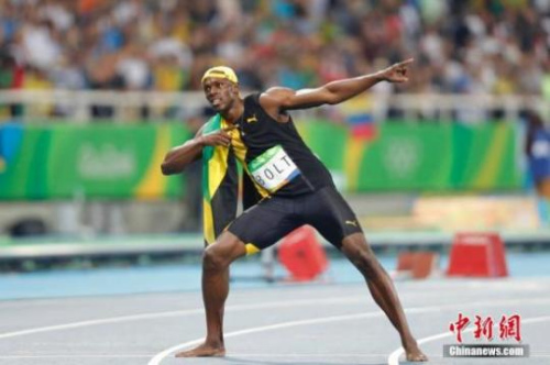 8月14日,里約奧運會田徑男子百米飛人大戰,牙買加“閃電”博爾特以9秒81的成績獲得冠軍。中新網記者 盛佳鵬 攝