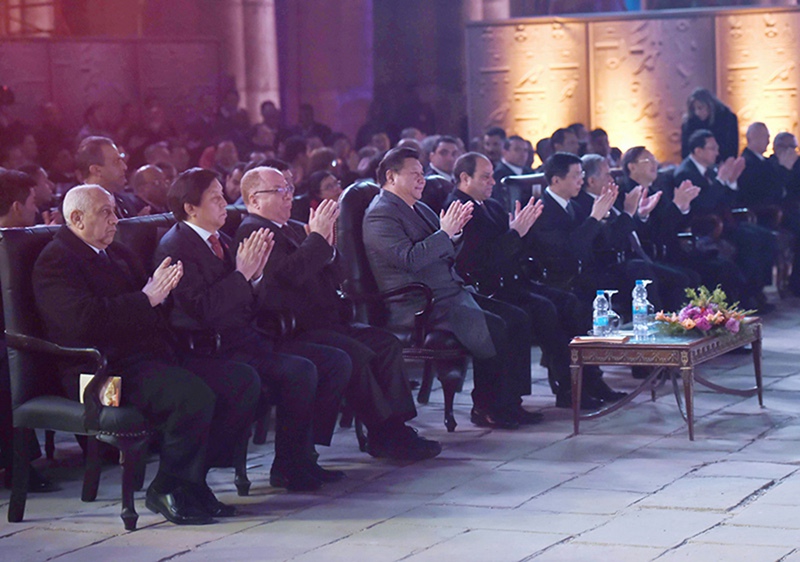2016年1月21日,國(guó)家主席習(xí)近平和埃及總統(tǒng)塞西在古老的盧克索神廟廣場(chǎng)共同出席中埃建交60周年慶祝活動(dòng)暨2016中埃文化年開幕式。新華社記者 張鐸 攝