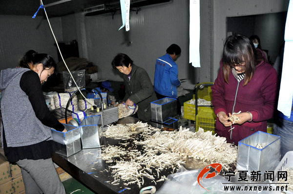 將南方的食用菌培育引進到彭陽,是當地政府發展產業脫貧的創新之舉。在彭陽縣福泰菌業有限責任公司的分撿車間里,一座用杏鮑菇堆成的“小山”周圍,幾名工人正迅速地分撿裝袋,做真空處理后打包裝箱。據福泰公司經理祁登榮介紹,目前企業培育食用菌類的生產技術已經成熟,帶動周邊農戶參與食用菌生產,實現企業與農戶雙贏是園區建設的最終目的。
