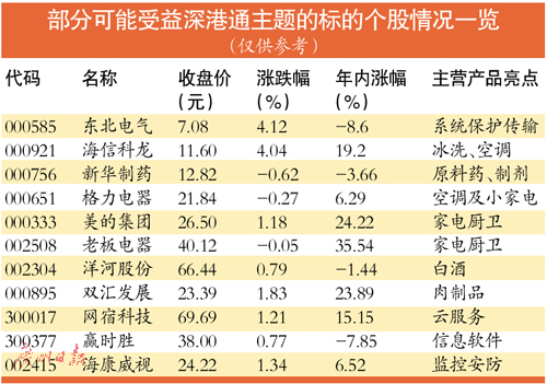 中金公司分析師王漢峰表示,從短期到中期,受益深港通的標的主要是香港市場大盤及中盤股票中的A 股相對稀缺的優質個股。銀河證券首席策略分析師孫建波則指出,深港通推出后A 股估值體系將進一步與國際成熟市場估值體系接軌,對A 股大盤藍籌股有一定的估值修復作用。同時,利好券商,尤其是在港券商,因為香港券商傭金費率更高,彈性更大。另外,A股低估值有業績的白馬成長股、消費股以及高股息股票也會受到境外資金的青睞。