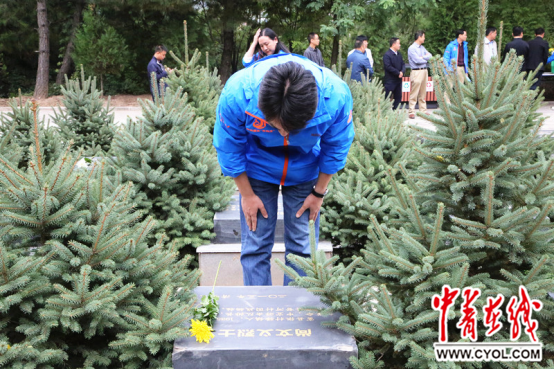 在直羅鎮烈士陵園,采訪團成員為革命烈士敬獻鮮花并鞠躬 中國青年報·中青在線記者 劉攀 攝