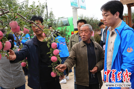采訪團記者向當地村民了解蘋果種植情況 中國青年報·中青在線記者 劉攀 攝