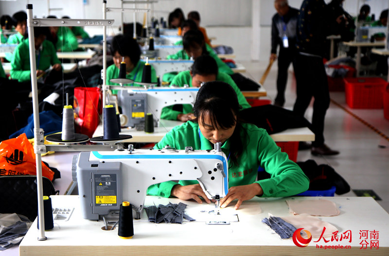 “做衣服、縫扣子,沒想到我這不中用的人也有法兒掙錢了。干活兒就在家門口,也不耽誤家里的事,這基地真是好。”桐柏縣城郊鄉(xiāng)北楊莊村村民董作琴說。
