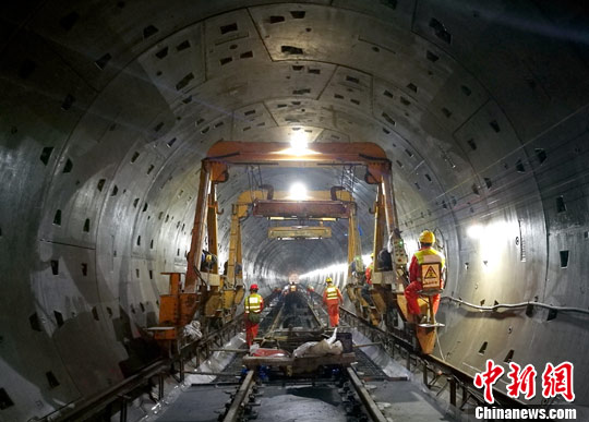 資料圖:成都城區(qū)駟馬橋地鐵7號(hào)線工地,工人正在進(jìn)行鋪軌作業(yè)。中新社記者 劉忠俊 攝