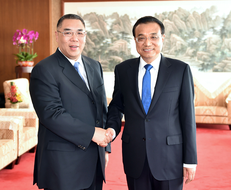 【李克強會見何厚鏵】李克強10日下午在澳門東亞運體育館禮節(jié)性會見全國政協(xié)副主席、前任澳門特首何厚鏵。總理表示,澳門回歸以來經(jīng)濟社會發(fā)生了巨大變化,這是一國兩制、澳人治澳的成功實踐。李克強充分肯定何厚鏵在特首任期內(nèi)所作的開創(chuàng)性和基礎性工作。