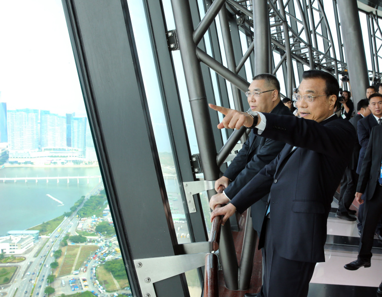 【李克強登上澳門旅游塔俯瞰濠江全貌】正在澳門視察的李克強總理,10日下午在崔世安特首的陪同下登上澳門旅游塔223米高的主觀光層,俯瞰濠江全貌,并聽取澳門促進經(jīng)濟適度多元可持續(xù)發(fā)展的產(chǎn)業(yè)策略,以及城市發(fā)展策略的匯報。