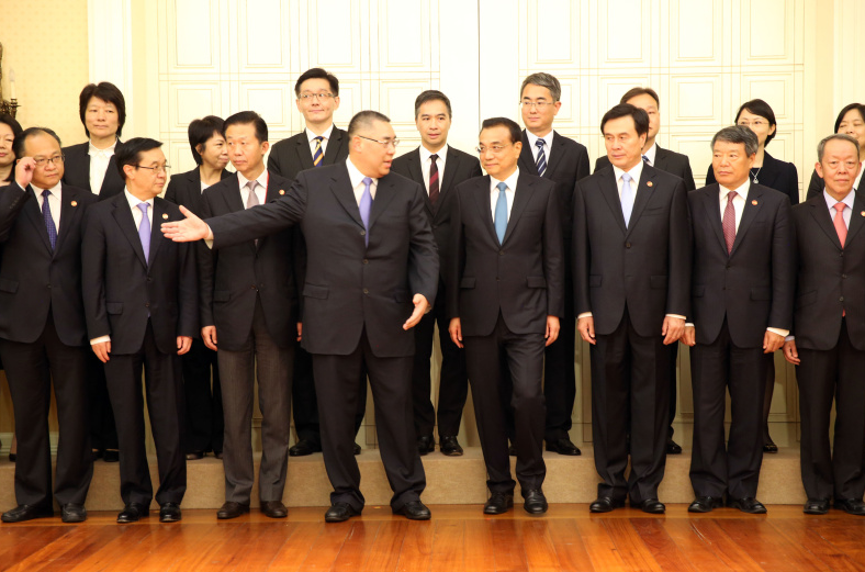 【李克強視察澳門特區(qū)政府總部并聽取匯報】李克強總理10日下午視察澳門特區(qū)政府總部,與特區(qū)政府主要官員合影,并在嘉賓簽名冊上簽名。在聽取崔世安行政長官及特區(qū)政府5位司長的工作匯報后,李克強作了重要講話。他說,中央政府最近根據(jù)新形勢下澳門發(fā)展的新需求,提出了多項惠澳政策。