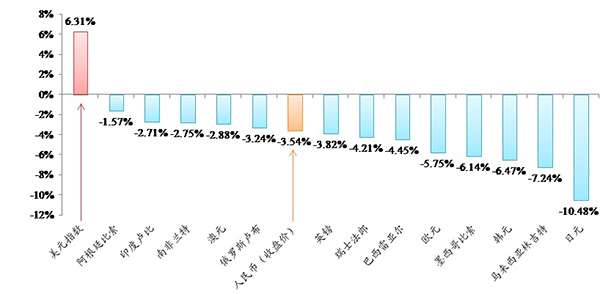 答:從數據看,人民幣在全球貨幣體系中仍表現出穩定強勢貨幣特征。近期美元上漲較快,反映的是美國經濟增長加快、通脹預期上升、美聯儲加息步伐可能明顯加快等美國國內因素。而人民幣匯率對美元波動有所加大,主要是特朗普當選美國總統、美聯儲加息預期突然增強、英國“脫歐”、埃及鎊自由浮動等外部因素驅動。這些因素對世界各國而言都有些意外,資金回流美國推動美元指數迅速上漲、美國三大股指再創新高,全球貨幣普遍對美元貶值,有的跌幅還比較大。下一步美元走勢存在不確定性,不排除市場預期修正引發美元回調的可能。