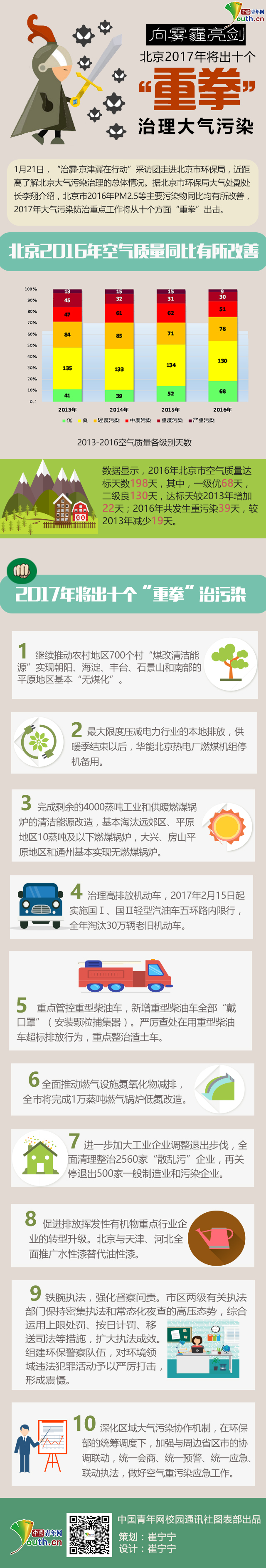 中國(guó)青年網(wǎng)1月24日電(記者 崔寧寧)“治霾·京津冀在行動(dòng)”采訪團(tuán)走進(jìn)北京環(huán)保局,近距離了解北京大氣污染治理的總體情況。據(jù)北京市環(huán)保局大氣處副處長(zhǎng)李翔介紹,北京市2016年P(guān)M2.5等主要污染物同比均有所改善,2017年大氣污染防治重點(diǎn)工作將從十個(gè)方面“重拳”出擊。