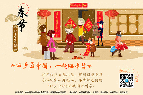 中青在線訊(中國(guó)青年報(bào)·中青在線記者 李博晶)春節(jié)回鄉(xiāng),您今年是否有更多的獲得感、幸福感?在雞年新春到來之際,在一年一度人口大遷徙之際,在國(guó)家網(wǎng)信辦網(wǎng)絡(luò)社會(huì)工作局、共青團(tuán)中央學(xué)校部指導(dǎo)下,中國(guó)青年報(bào)社、人民網(wǎng)共同發(fā)起“中國(guó)好網(wǎng)民·回鄉(xiāng)看中國(guó)”2017尋找百名青年觀察員行動(dòng)。
