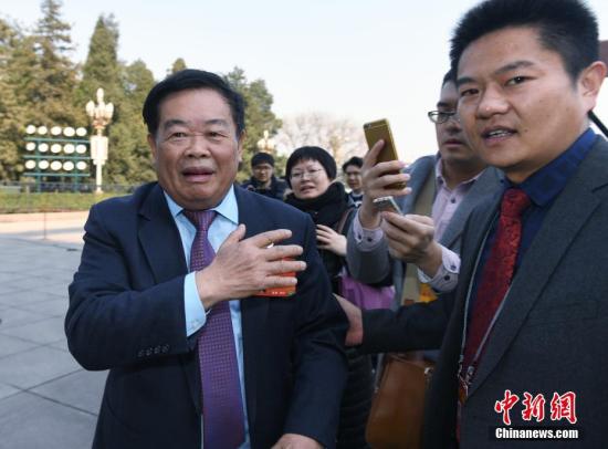 資料圖:3月3日,全國(guó)政協(xié)十二屆五次會(huì)議在北京人民大會(huì)堂開(kāi)幕,曹德旺委員步入會(huì)場(chǎng)。中新社記者 侯宇 攝